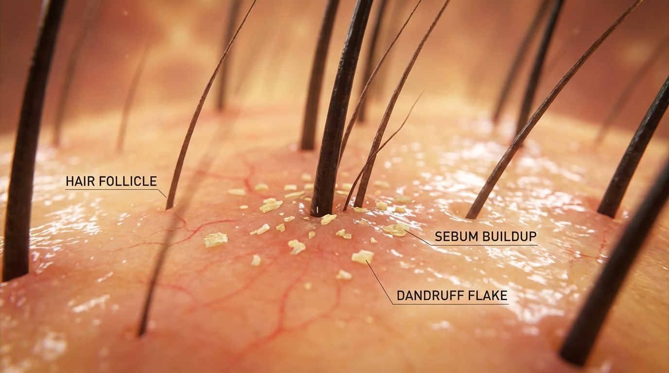 지루성 탈모는 두피의 사막화가 아니라 '홍수' 때문에 발생합니다. 과도하게 분비된 피지가 모공을 막고, 피지를 먹고 사는 곰팡이 균이 번식하여 두피에 염증을 일으킵니다. 염증으로 약해진 지반(두피)은 머리카락을 단단하게 붙잡지 못하고 결국 놓아버리게 되죠.